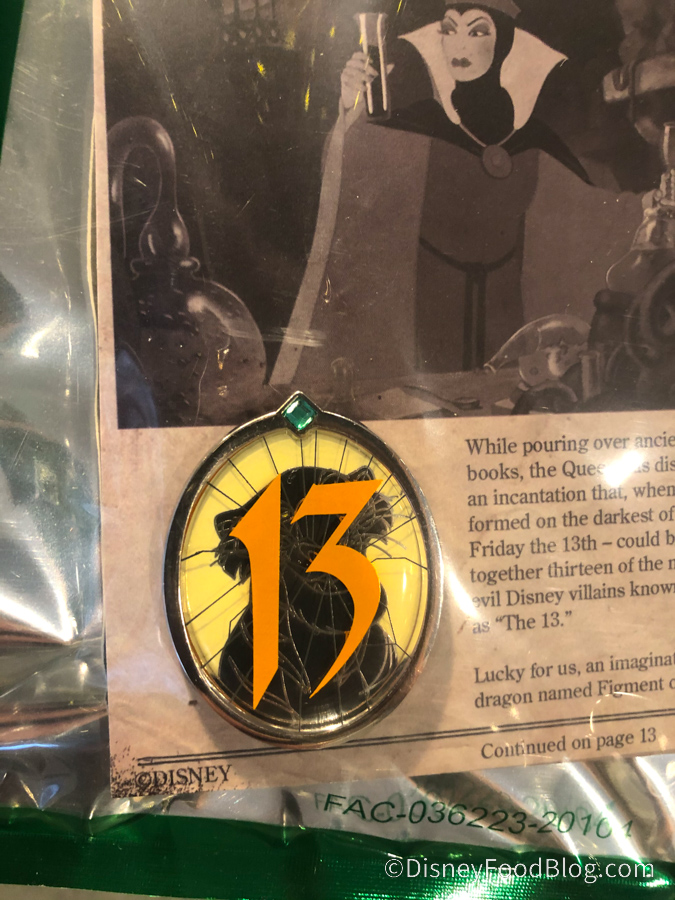 These pins are so unique! The first thing we noticed was a special newspaper from Walt Disney World News with one big headline about “The 13,” referring to the Disney villains. How cool!