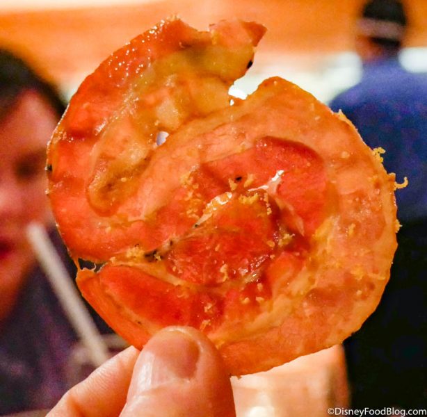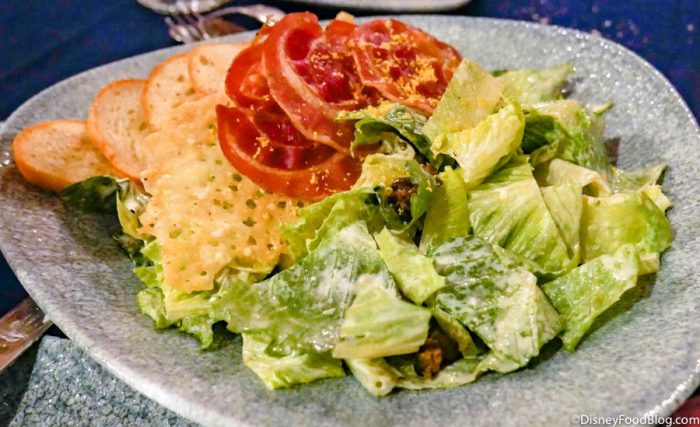 The steak was surprisingly good. It was thick and served medium rare, like we ordered. Although this wasn’t the best Disney steak we’ve ever had, it had a buttery flavor and was seasoned well. While the flavor of the steak was decent, for what we paid we were a little underwhelmed by the cut.