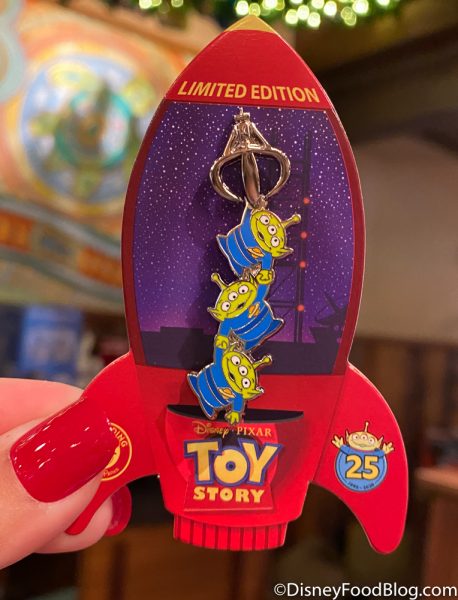 We also spotted the new 25th Anniversary Toy Story pins! You can get the Buzz or Woody pin…