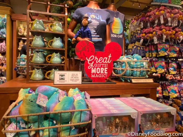 The new Soul merchandise has arrived at Disney’s Animal Kingdom! We saw all of the merchandise in the Emporium at Magic Kingdom and it arrived at Disneyland Resort too! You can find most of the collection including plushes, cups, shirts, ornaments, and more at Riverside Depot!