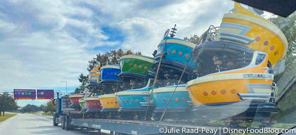 I also agree with you. You can see the colorful and round ride vehicles stacked up on this trailer. We’re not exactly sure where these attraction vehicles are headed.