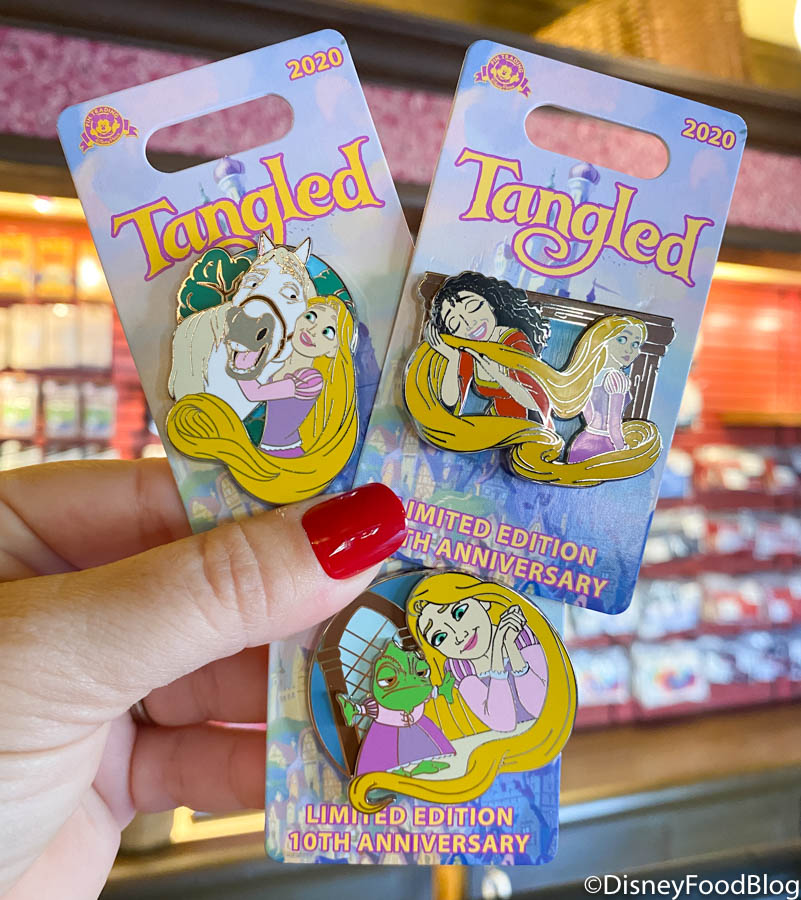 Over at Frontier Trading Post, we found several new pins celebrating the 10th Anniversary of Tangled. There are these three Tangled pins for $19.99 each…