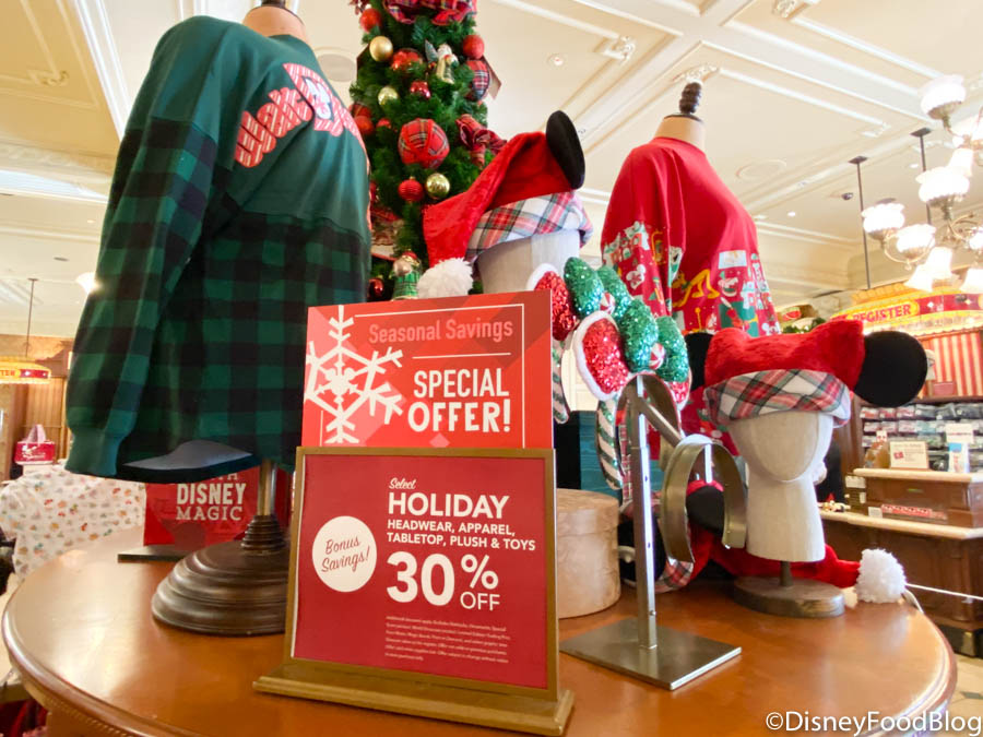 Several locations around Magic Kingdom including Fantasy Faire, Star Traders, Emporium, Uptown Jewelers, Ye Olde Christmas Shoppe, and Frontier Trading Post all were offering the 30% off holiday sale! And yes, discounts stack!