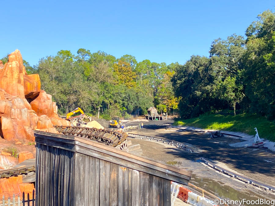 Rivers of America is still drained and we were able to peek over at some of the construction equipment parked in the riverbed. We sure hope to see water flowing in these channels again soon!