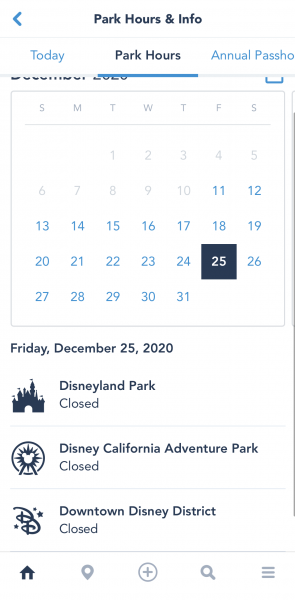 We later checked the hours on the Disneyland website, and the hours for Disneyland are entirely gone from December 25th.