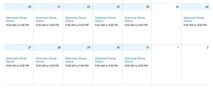 We also noticed that Downtown Disney’s hours for Christmas Eve and New Year’s Eve have been slightly reduced. Downtown Disney has typically been open lately from 9AM-9PM, but on Christmas Eve and New Year’s Eve, it will only be open from 9AM-8PM (just one hour less in the evening).