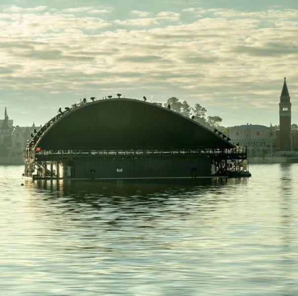 If you’re as excited for EPCOT’s new nighttime spectacular, Harmonious, as we are, then get pumped! Because today, Imagineer Zach Riddley shared photos of the first barge for the show arriving in the World Showcase Lagoon!