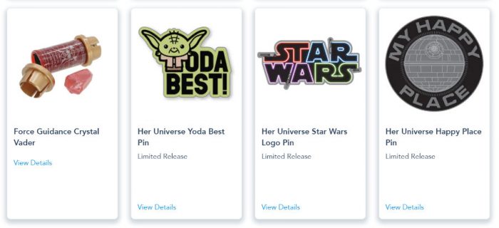 But there are plenty of other amazing Star Wars items available, too, including Force Guidance Crystals and some cool limited edition pins.