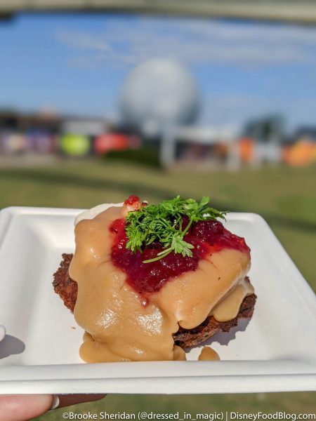 We’ve seen a Turkey waffle served at EPCOT in the past, but the option here is different than those previous versions.