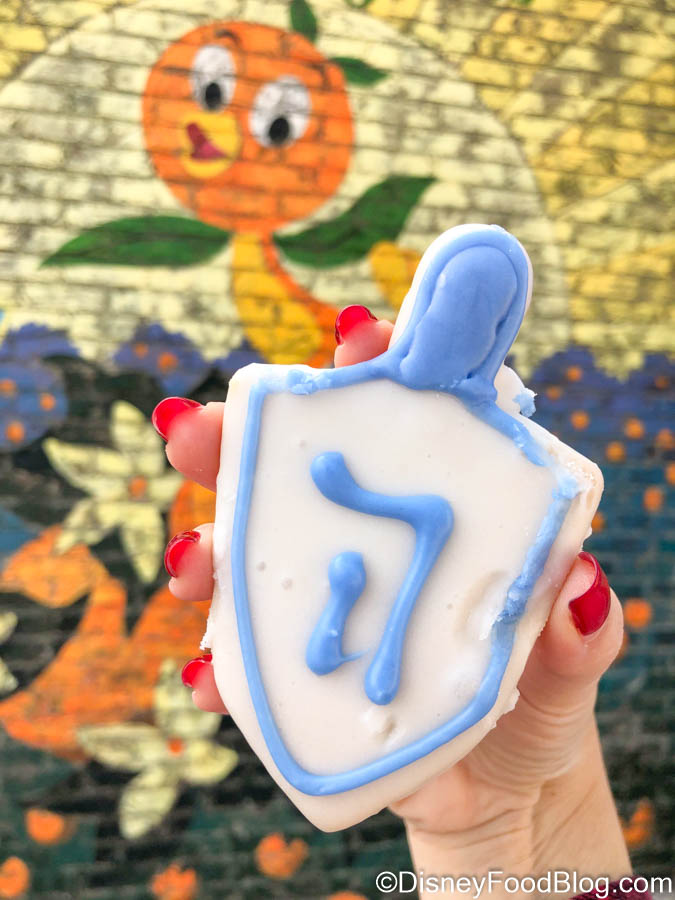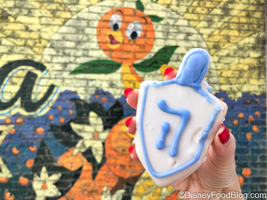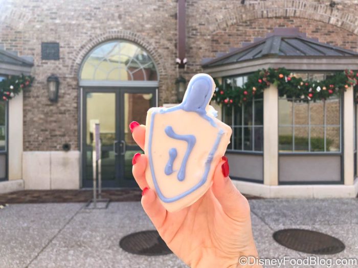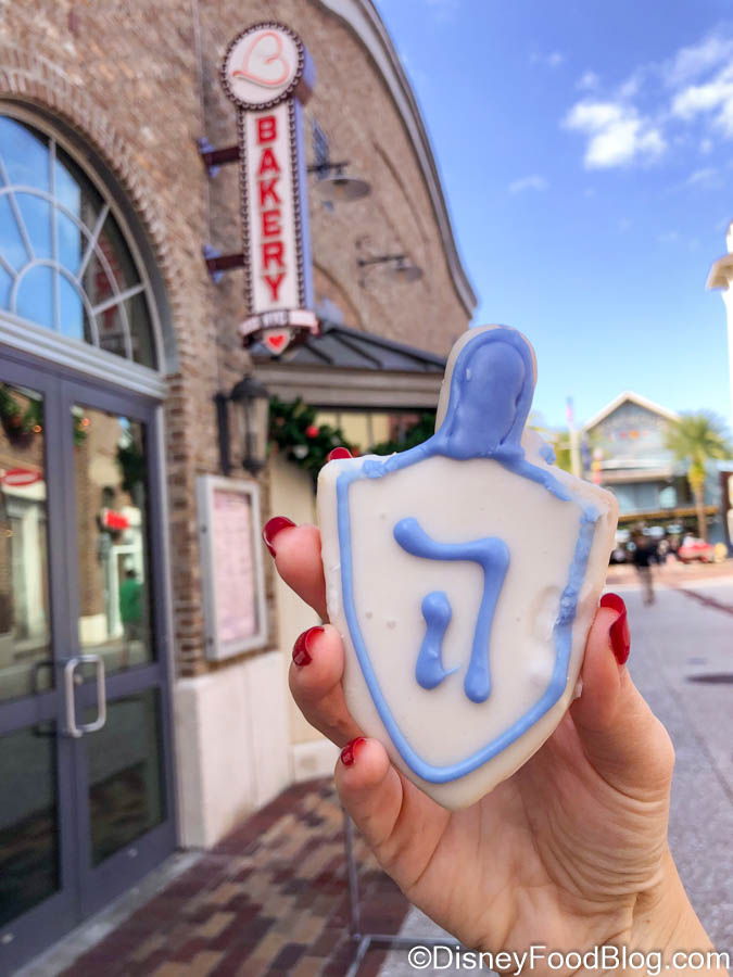We stopped by here today on our visit to Disney Springs, and we found an adorable new snack — this vegan Dreidel Cookie!
