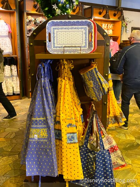 We also spotted some new kitchen items, including trays, aprons, and oven mitts. There are some new bags here, too.