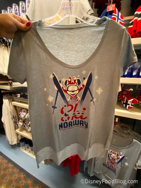 We spotted tons of new merch in the Norway Pavilion. This Norway Minnie Mouse Scoop Neck Tee is $36.99.
