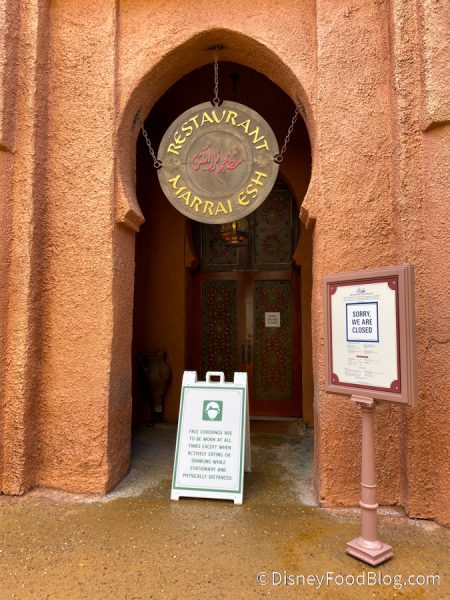 Restaurant Marrakesh is STILL closed — it hasn’t been open since Disney World reopened.
