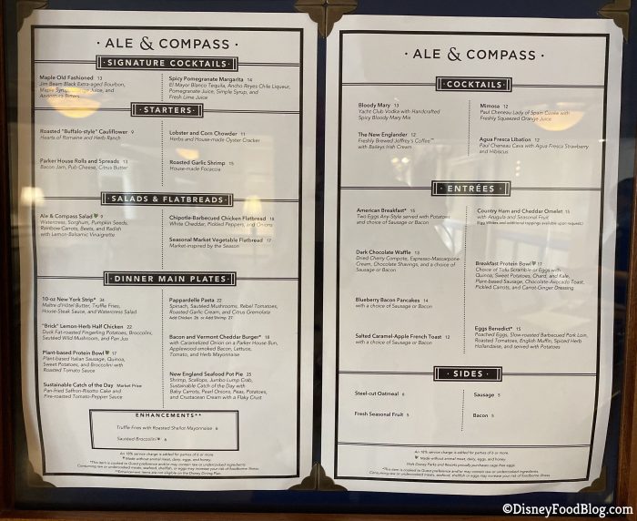 We decided to try breakfast at the table-service location Ale & Compass on our recent trip to Disney World. This restaurant is known for coastal, New-England style cuisine. We haven’t been blown away by this location in the past so we wanted to see how breakfast was holding up.
