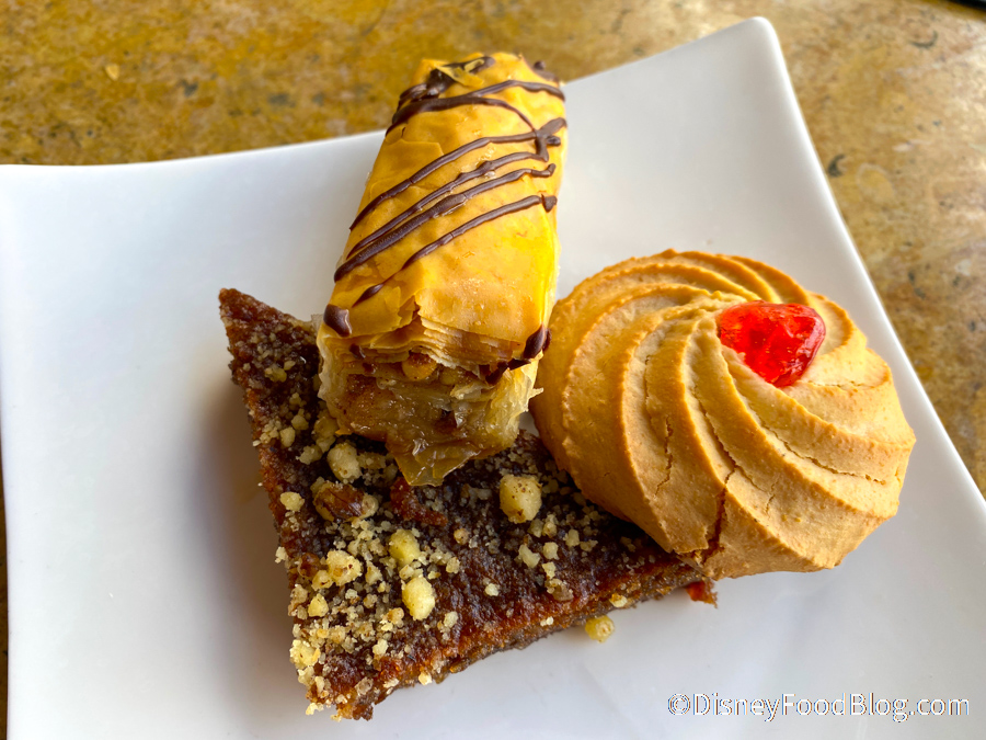 A Cast Member told us the dessert platter cookie would rotate out from time to time, although the Karydopita and Baklava would remain. Considering that the cookie was our least favorite part of the meal, we’d be curious to see what it gets switched out to eventually. The last time we dined here, we had to ask ourselves why we don’t go more often, and even with the menu changes, we were impressed! Although these are small plates, the portion sizes are good and perfect for sharing and trying a bunch of items. We will continue to keep you updated as Disney continues to take over the Morocco Pavilion.