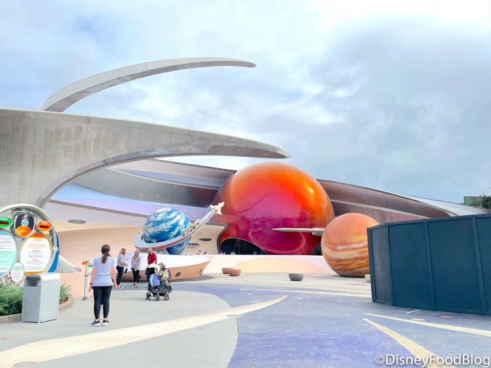 However, the sign is still covered for the restaurant near Mission: SPACE.