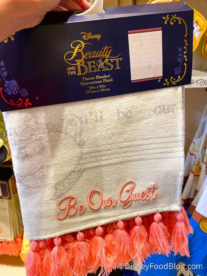 While you’re at the Emporium, you can also pick up the lovely Beauty and the Beast Blanket that is decorated with sheet music to “Be Our Guest,” Mrs. Potts…