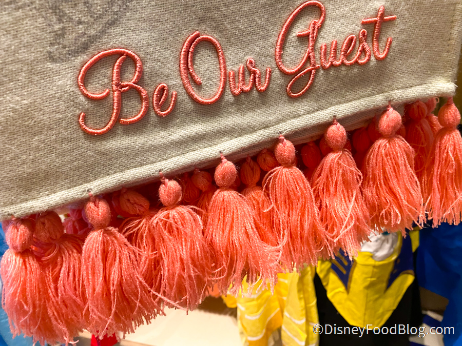 …an embroidered “Be Our Guest”, and pink tassels!