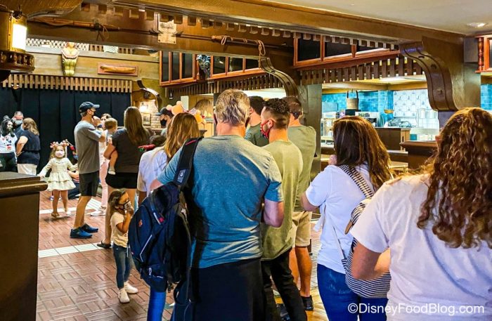We’ve REALLY been missing New England Clam Chowder and Lobster Rolls at Columbia Harbour House. So, when we saw the doors open, we were hyped to go inside for a possible surprise re-opening. But, the Peter Pan’s Flight queue was actually being redirected through the restaurant instead when we were in the Magic Kingdom!