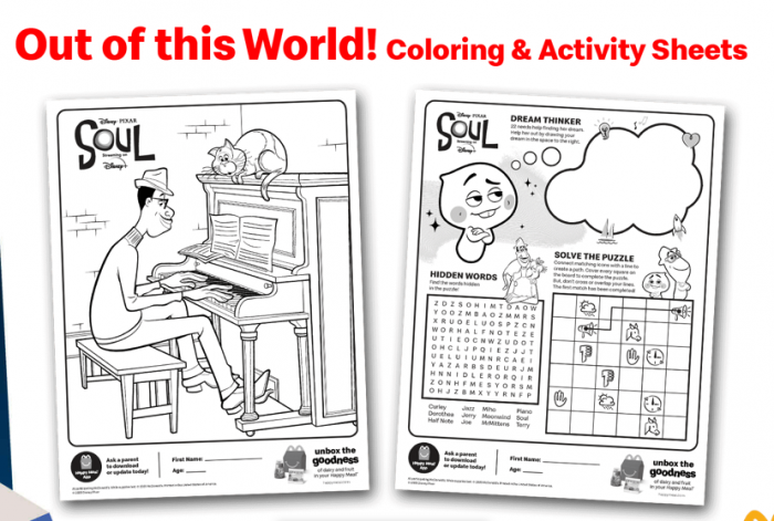 …or you can download coloring and activity sheets themed to Soul online on the McDonald’s website!