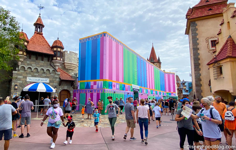 There is still some scrim and construction walls surrounding “it’s a small world,” but it sure is nice to see more of this attraction from the outside again! And when there are more construction updates around Magic Kingdom and the rest of Walt Disney World, we’ll keep you updated about how they’ll impact your vacation!