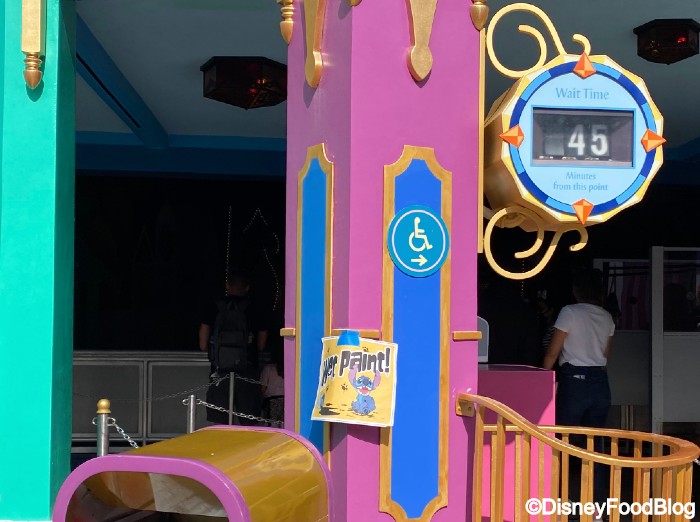 We noticed that there IS a new paint job, courtesy of this Wet Paint sign featuring that rascal Stitch!