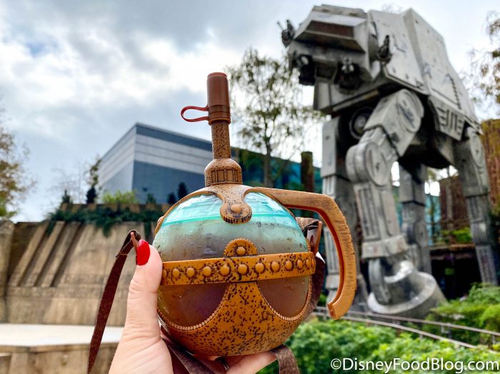 We saw a Star Wars: Galaxy’s Edge sipper in Disneyland last year, but it’s been quite a while since we’ve seen anything new. So, this morning, we made our way to Ronto Roasters in Star Wars: Galaxy’s Edge in Disney’s Hollywood Studios to check it out!