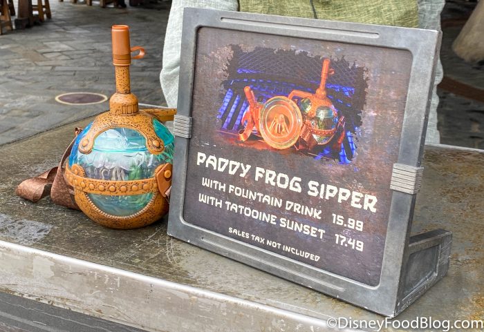 At Ronto Roasters, you can get the Paddy Frog Sipper with the Tatooine Sunset drink inside of it for $17.49. You can also get it with assorted Coca-Cola options for $15.99.