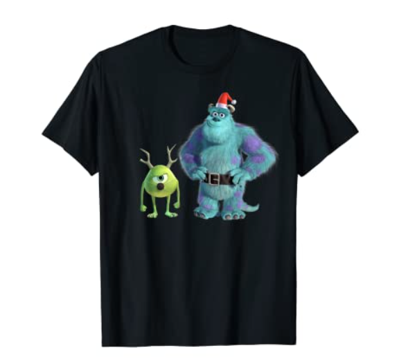 If you’re more of a Pixar fan, then you’ll love this next tee, featuring Santa Sulley and a very grumpy reindeer Mike! Sulley’s right-hand man is definitely giving off some hard Scrooge vibes here. This one comes in 10 different colors and a variety of sizes for $19.99!