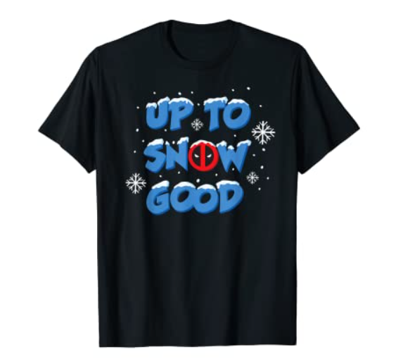 Moving on to yet another one of Disney’s franchises, this next shirt is for all the mischievous little elves in the house. The ‘Up to Snow Good” Deadpool-themed tee is available in 4 colors and both men’s and women’s sizes.