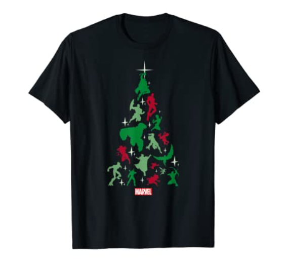 If you’re too busy saving the city, the country, the world, or the galaxy to celebrate the holidays, then we know just what you need! This Avengers and Guardians of the Galaxy Christmas Tree T-Shirt features some of our favorite heroes, with their silhouettes in the shape of a Christmas tree!
