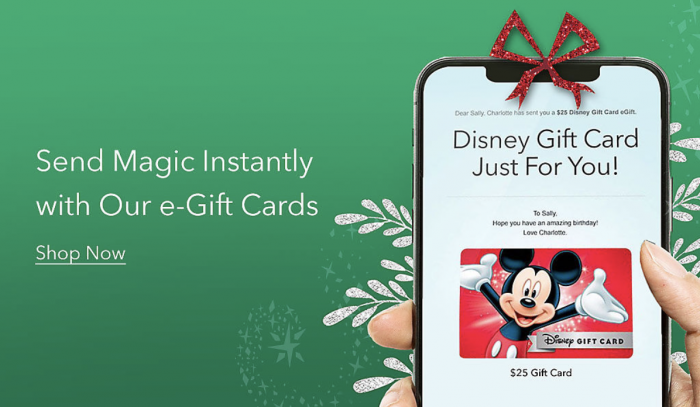 On shopDisney, you can purchase a gift card and send it directly to someone’s email, making it the perfect last minute gift! Gift cards are available in denominations starting at $25 and up to $500.