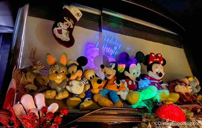Plushes are a fun way to celebrate the holidays, too. Check out all these familiar faces! Plus, an adorable Minnie Mouse stocking hangs from the RV!