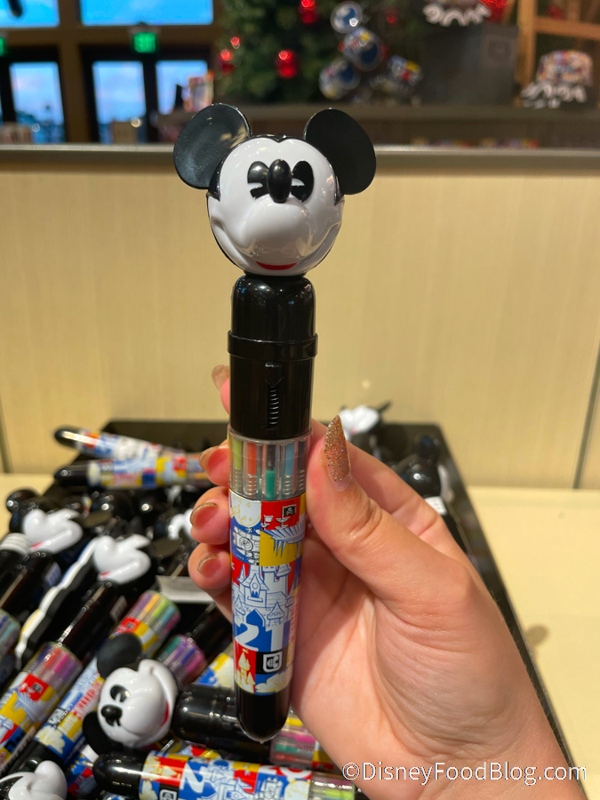 These jumbo multicolor pens are so much fun and make great stocking stuffers. So why not check out the 2021 Disney World Pen with Mickey’s head right there on top? It’s also got the same retro comic book style art on its body! The pen is $12.99.