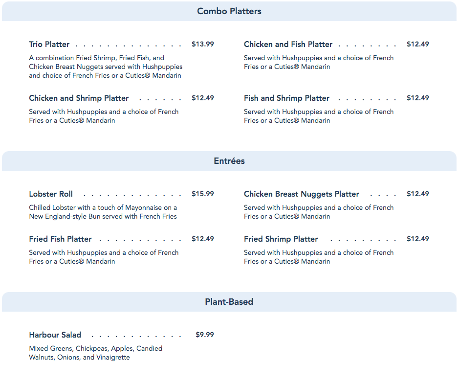 On this (not so) new menu, you can snag the fan-favorite combo platters, entrees including a Lobster Roll, Fried Shrimp and Fish, Chicken Nuggets, and a plant-based salad option.