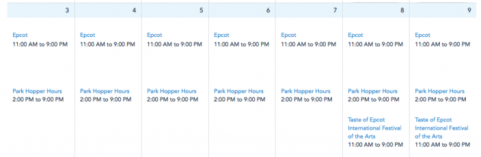 When EPCOT’s park hours for January 3rd through the 9th were originally announced, the park was set to be open from 12PM to 8PM. Now, the calendar shows that EPCOT will be open from January 3rd through the 9th from 11AM to 9PM.
