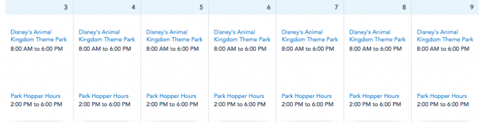 Finally, over at Disney’s Animal Kingdom, park hours have been slightly extended as well. Previously, the park was set to be open from 9AM-5PM from January 3rd through January 9th. Now, the park will actually be open from 8AM to 6PM on those days.