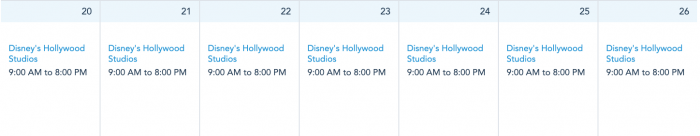 Next week, Disney’s Hollywood Studios will be open daily from 9AM-8PM.
