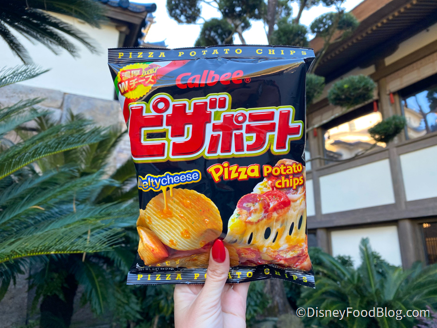 We’ve also tried many of the unique potato chip flavors over at the China Pavilion, but today, we were at the Mitsukoshi Department Store in Japan and saw Pizza Potato Chips. They come in a bag that says they’re pizza potato chips WITH MELTY CHEESE. Hello? It’s like they know us!