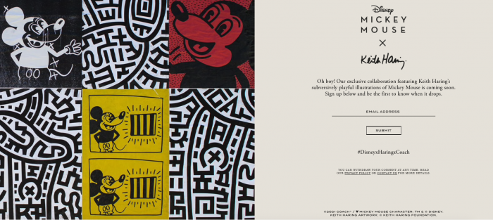 Coach’s Creative Director, Stuart Vevers, said “Sometimes the best design comes from the most unlikely juxtapositions, and I can’t think of a cultural clash that brings me more joy than Mickey Mouse and Keith Haring.”