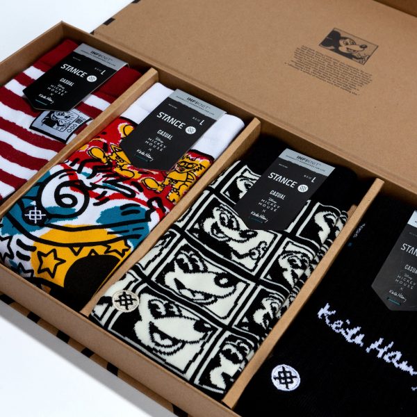 Recently, we spotted a Keith Haring x Mickey Mouse collection from Stance that was really unique and colorful and featured some of the signature art on it from ’80s street art pioneer Keith Haring.