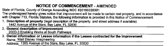Imagineers also filed a permit with the company widely behind work on Future World’s transformation for the EPCOT Transformation, The Whiting-Turner Contracting Co. This one is an amended permit, extending Future World site work, demolition, hardscaping, and landscaping.