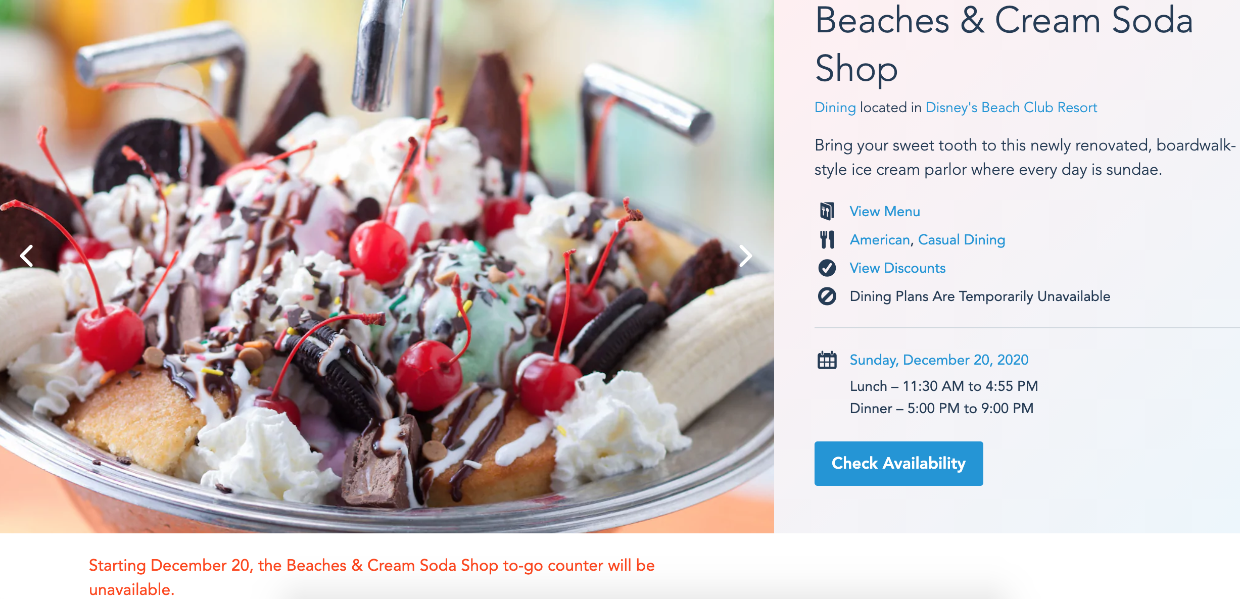 However, as of today, December 20th, the Beaches & Cream To-Go Window is closed! We spoke with a Cast Member who confirmed this and told us it’s “closed indefinitely.”