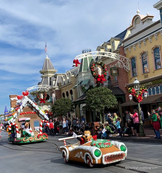 During the Halloween season, Magic Kingdom guests could spot the Disney Villains cavalcade, as well as the previously mentioned Jack, Sally, and even Oogie Boogie. During the Christmas season, Santa has made appearances in cavalcades at all of the parks as well as the toy soldiers and reindeer typically only seen in the exclusive Christmas Party parade. Plus, some of the floats being used in Magic Kingdom are typically rolled out for the Christmas party!