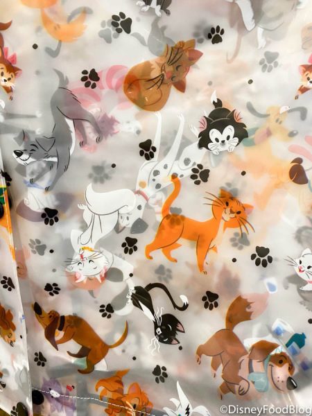 Up close, the pattern has a bunch of Disney cats and dogs. We spot Tramp, Duchess, Figaro, and more!