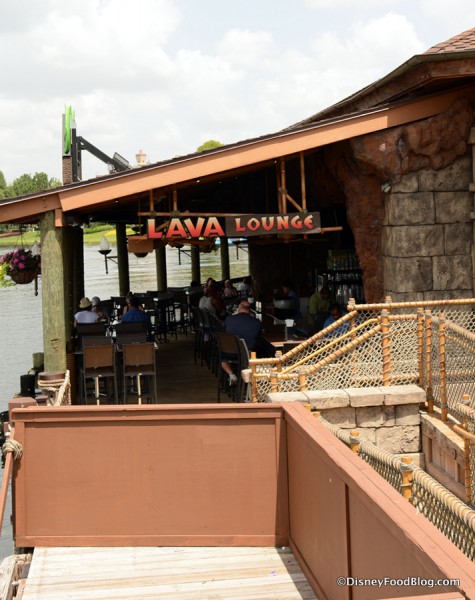 At the waterfront side of the restaurant is the aptly named Lava Lounge, which is an open-air bar serving up all the colorful, souvenir cup-centric drinks available inside Rainforest Cafe. Space is a bit more limited out here, especially if you’re after a table, but you do get a nice view of the water and the bar is pretty fun.