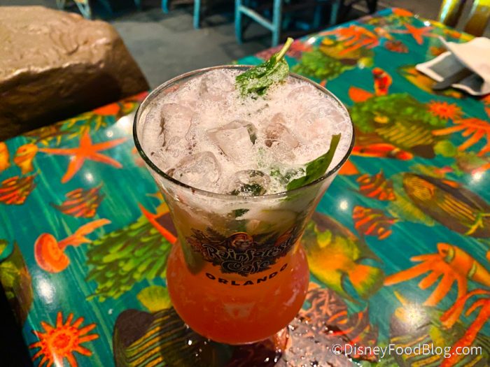 Or maybe you can. It’s not a super sweet drink (at least not as sweet as most of the other sugar-bomb beverages on the menu), and we liked the refreshing taste of mint. We did pick up the strawberry flavor but overall it was a forgettable drink for us. It still tasted very much like a mass-produced drink and there are SO many other craft cocktails you can get at Disney Springs for the same price that are much much better.
