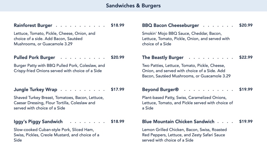 We can see, though, the appeal of Rainforest Cafe for families or groups who need to please a variety of palates in one sitting. There are a lot of items to choose from here, and we get how that could be a deciding factor when it comes to where to eat at Disney Springs. But in the end, you don’t come here for the ribs or the burgers or the drinks — you come here for the atmosphere. It FEELS like you’re on vacation eating here, which is not a bad thing! Check your expectations for the food at the door and enjoy the soothing sights and sounds of a screaming gorilla while you dine in an artificial tropical paradise!