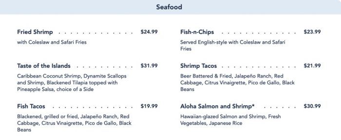 …as well as a whole section dedicated to seafood.