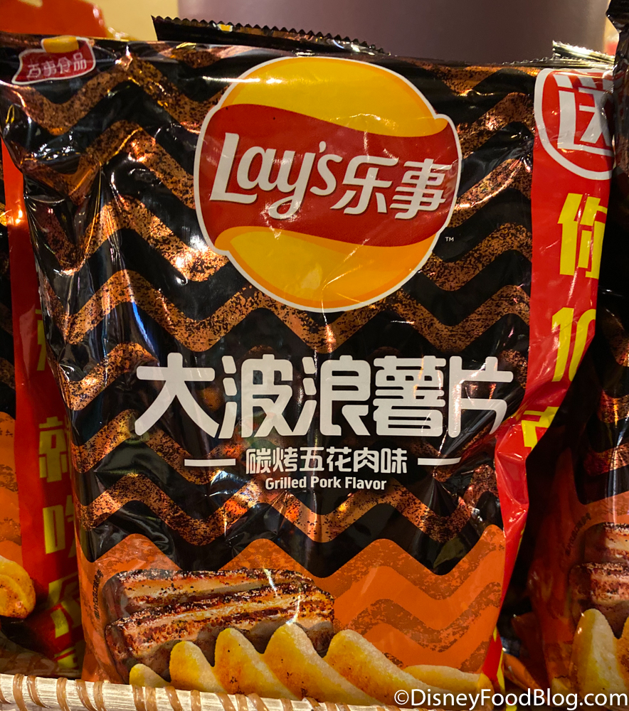 We LOVE trying the unique flavors of potato chips at EPCOT! We’ve tried everything from cucumber to candy flavored Lay’s in the Japan and China Pavilion. We spotted one more flavor that’s new to us this week. Head on over to the House of Good Fortune gift shop if you want to try the Grilled Pork chips!